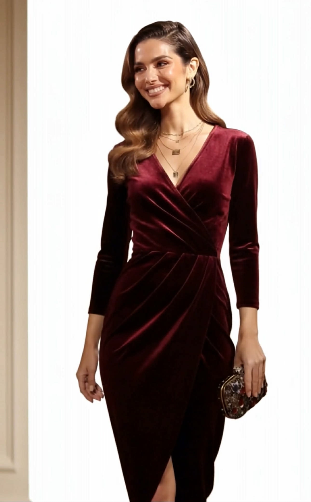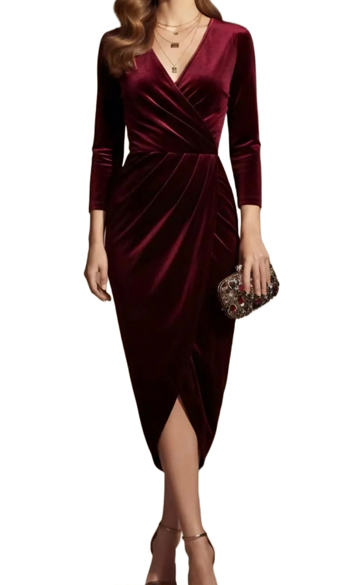 Rochita Lea este realizata din catifea moale de calitate premium, elastica. Croiul rochiei este sic, petrecut, cu falduri in zona taliei si bustului. Rochia este captusita integral pentru un plus de confort si eleganta.